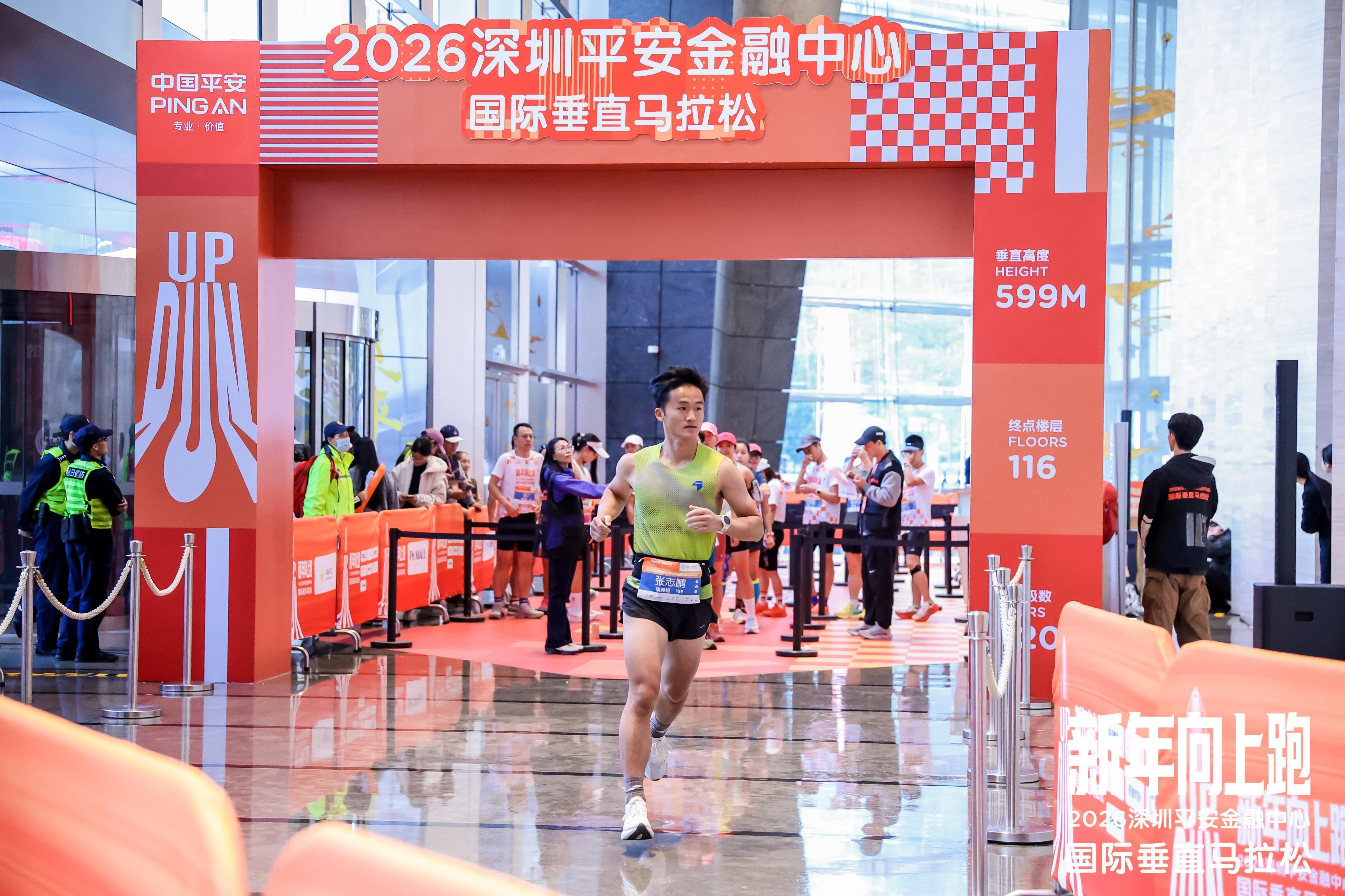当天上午,参赛选手们分组从深圳平安金融中心西大堂起跑,经3201级台阶抵达位于深圳平安金融中心116层“云际观光层”的终点。